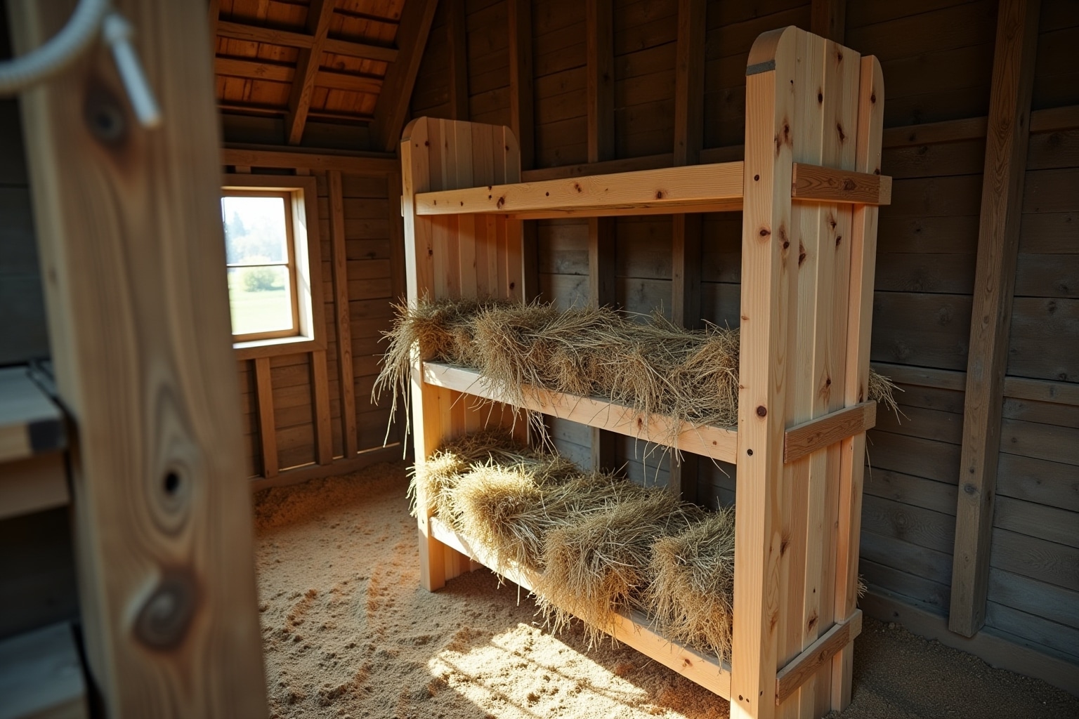 - Heuraufe mit Beleuchtung: Installiere eine Beleuchtung in der Heuraufe, um das Heu auch im Dunkeln gut sichtbar zu machen.