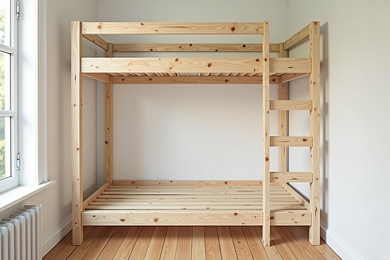 - Klassisch: Ein einfaches Hochbett mit geraden Linien und einer Leiter.