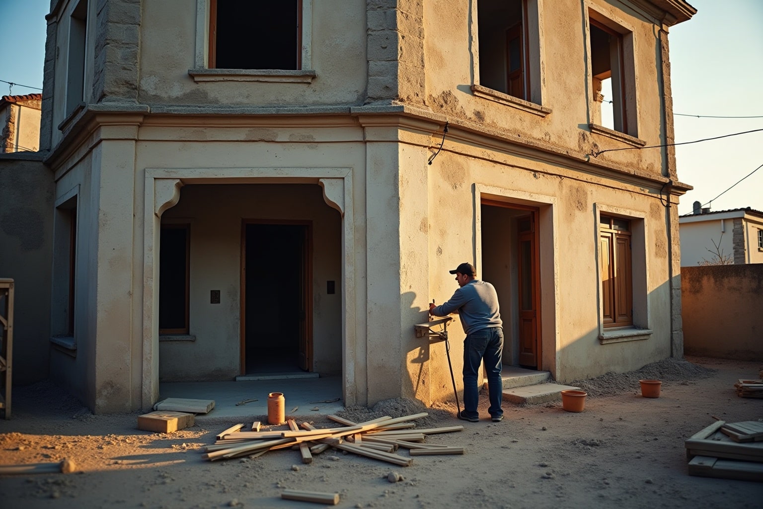 - Außenfassade: Je nach Zustand kann eine Runderneuerung des Außenputzes, ein Anstrich oder die Reparatur von Mauerwerk notwendig sein.