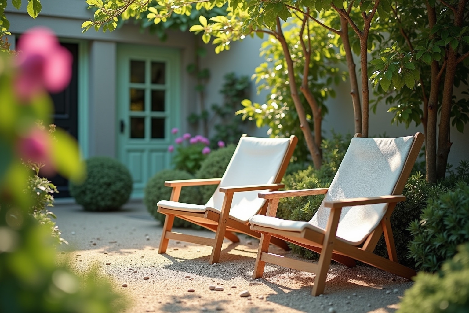 Verwandle deinen Garten in eine kleine Küstenlandschaft. Blaue und weiße Farbtöne, kombiniert mit natürlichen Materialien wie Holz und Stein, schaffen eine maritime Atmosphäre. Dekoriere mit Muscheln, Treibholz und kleinen Leuchttürmen. Ein paar Palmen oder Gräser verstärken das Urlaubsfeeling zusätzlich.